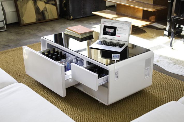 This smart coffee table include a refrigerator